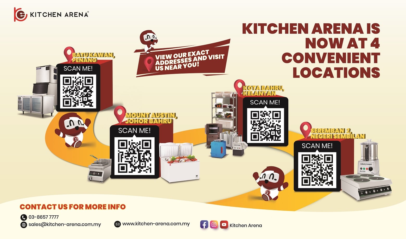 Kitchen Arena is recognized as the leading supplier of commercial kitchen equipment in the Malaysia, supplying professional kitchen equipment to restaurants, chain stores, cafe and more. With over 5,000 commercial kitchen equipment products available online, we're sure you'll be able to find what you need. We offer the best quality and largest range of commercial equipment from the biggest brands in hospitality.