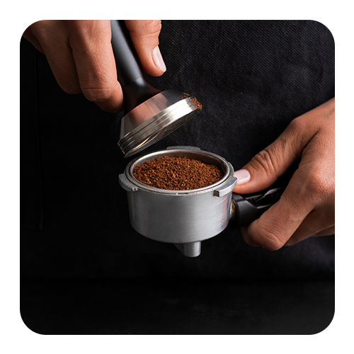 Definition: The act of firmly and evenly pressing down espresso grounds in the portafilter before extraction.