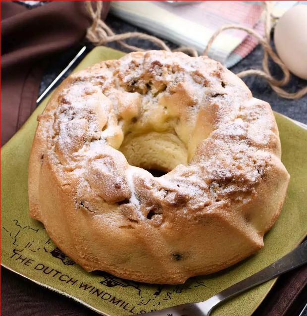 5. Put the cake in the oven and bake at 180 degrees for about 30-40 minutes. Let the cake stand for 10 minutes before taking it out. After it has cooled down, sprinkle with a little powdered sugar and slice it.