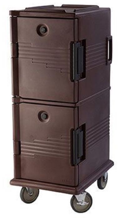 1. Double-compartment, high-capacity carts hold and transport hot or cold food.