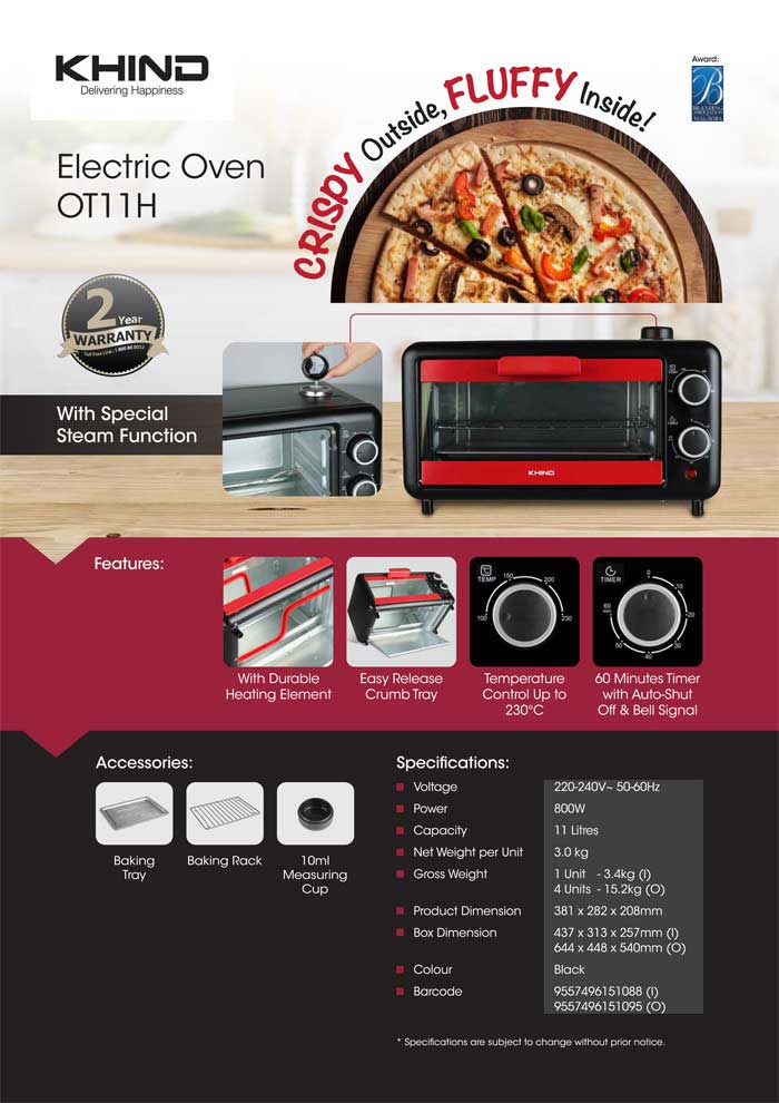 KHIND 11L Electric Oven with Steam Function OT 11H